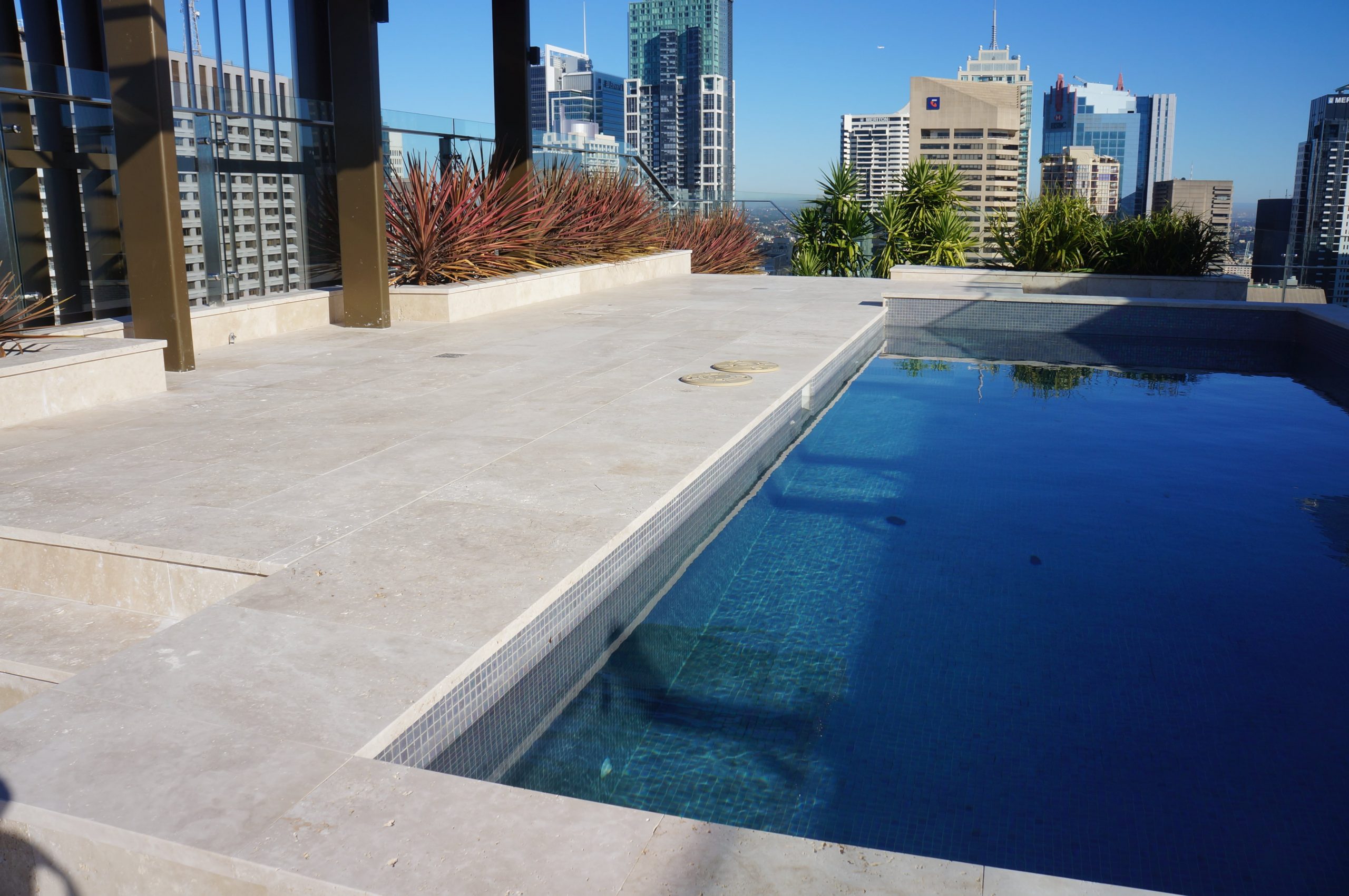 Travertine Ivory Tumbled is light to medium beige travertine with a tumbled edge. All of our tumbled travertine is unfilled. This is stocked in many formats such as pavers, tiles and French pattern.